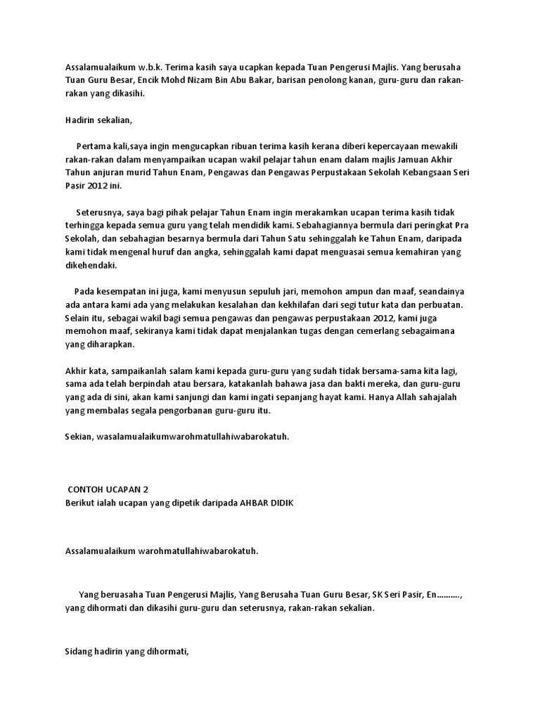 Ucapan Ringkas Majlis Akhir Tahun Persekolahan Wakil Pelajar Blog Majlis My 2021